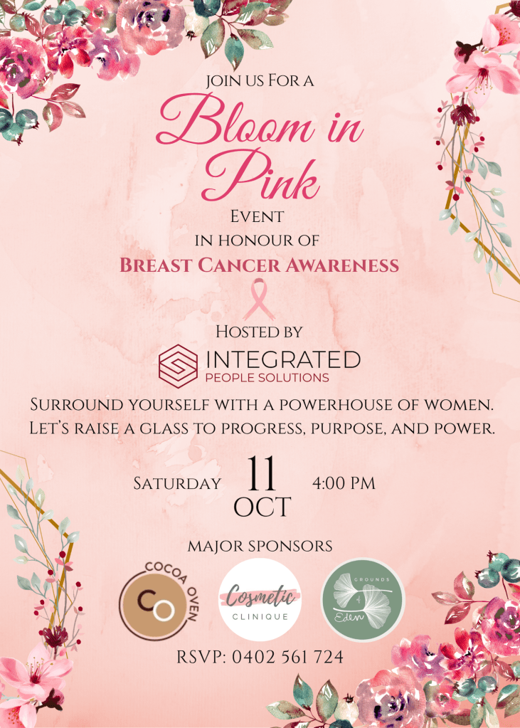 Get your tickets at – https://www.eventbrite.com.au/e/bloom-in-pink-registration-1413538785559